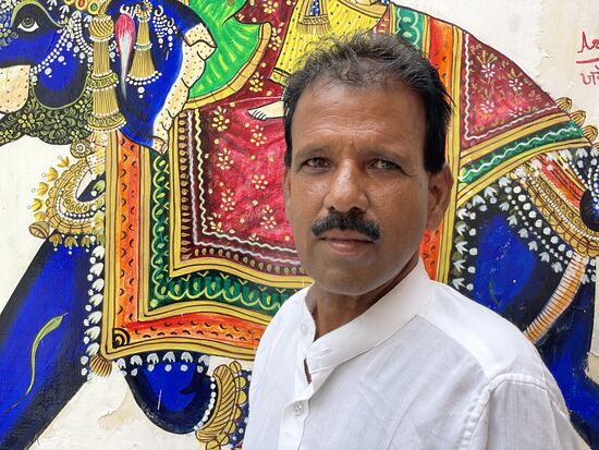 Ich merke, dass ich mich jetzt endgültig zu lange beim Spendentisch aufgehalten habe, mein Guide drängt weiter. Erwill mir sein Atelier zeigen, das gleich daneben liegt. Er ist Maler und hat mir gleich als er mich gefragt hat, woher ich komme, erzählt, dass er Ende September nach Zürich fliegen würde. Das Kunsthaus hätte ihn und ein paar indische Künstler eingeladen, ihre Arbeiten auszustellen. Das freut mich sehr und wenn ich dabei hätte, würde ich ihm gern ein paar Schweizer Franken schenken, damit er sich dort einen Kaffee kaufen könnte