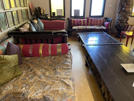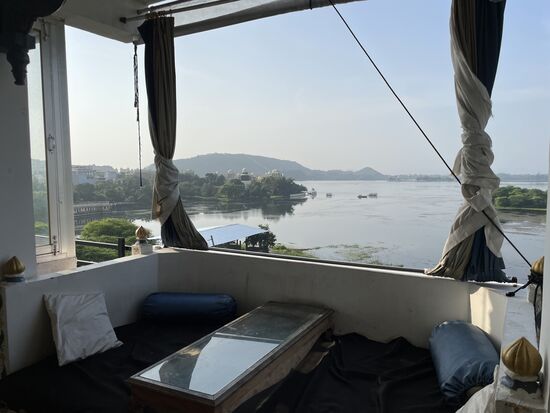 Die romantische Terrasse auf dem Dach des Hotels sieht heute morgen sehr prosaisch aus. Was so eine rote Beleuchtung doch ausmacht. Alle unschönen Ecken sind in der romantischen Beleuchtung verschwunden, die Terrasse wirkte verzaubert und verwunschen. Ich geniesse mein Frühstück ein Stockwerk tiefer im offenen Restaurant, das natürlich ebenfalls die tolle Aussicht auf den See bietet und ausserdem diese gemütlichen Divane hat, so wie mein Erker im Zimmer.