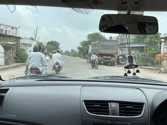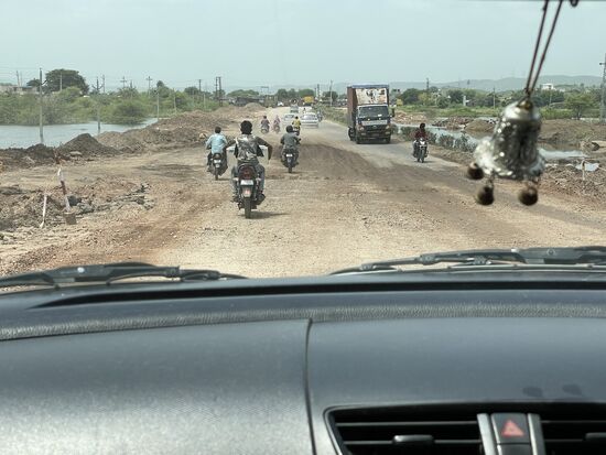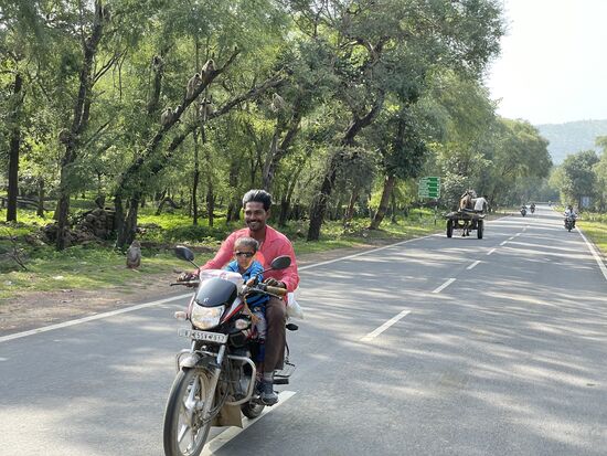 Es ist nur die Einfahrt zur neuen Autobahn auf der wir fahren, kurz darauf wechseln wir auf die Gegenfahrbahn, da ist die Strasse fertig und der Untergrund wieder ruhiger. Immer wieder ist es unfassbar. Wir fahren da nicht auf einer unbedeutenden Nebenroute. Das hier ist die wichtigste Nord-Süd-Verbindung. Delhi-Mumbai. Hier kämpft sich der gesamte Verkehr durch. Lastwagen, Büsse, PWs und all die privaten Transporte. Aber das ist eben Indien. Das macht es aus. Wahrscheinlich wäre eine Reise über eine durchgehende Autobahn irgendwann überhaupt nicht mehr spannend,
