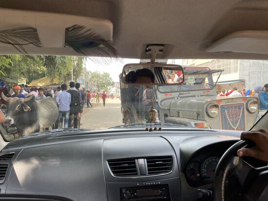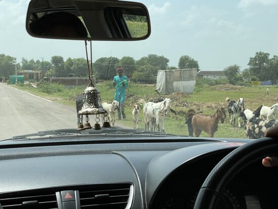 Ich versuche dann tatsächlich ein wenig zu schlafen. Später fange ich ein neues Buch an und switche gedanklich zwischen dem Zugersee und der Strasse in Indien hin und her. Hier die Hirsefelder, durch die wir jetzt fahren, dort ein komplizierter Mordfall am heimischen Zugersee, der mich immer mehr hineinzieht und mich zeitweise vergessen lässt, wo ich bin.