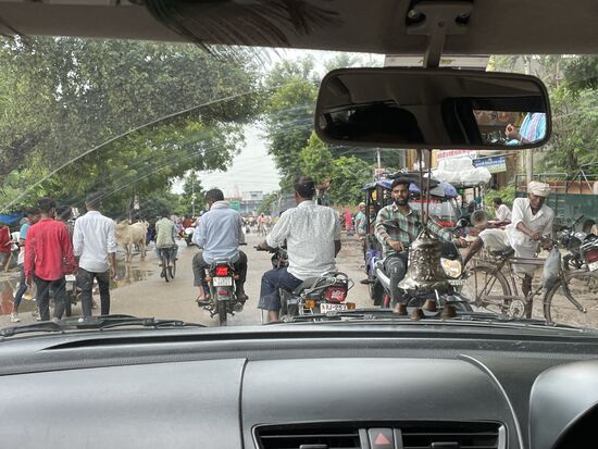 Wir fahren zurück zum Hotel, wo auf uns ein kleines Frühstück mit Rühreier und Toast wartet und dann fahren wir los. Vor uns liegt auch heute wieder eine lange Fahrt, vielleicht die längst meiner Rajasthan-Reise, nämlich 400 km, zurück nach Delhi.