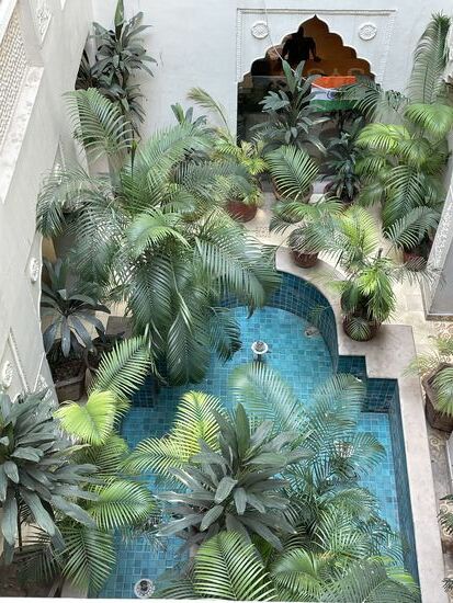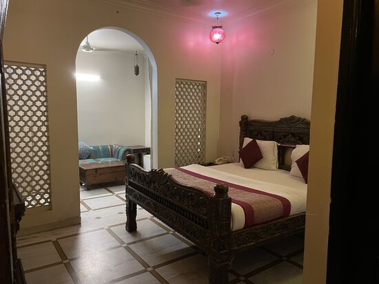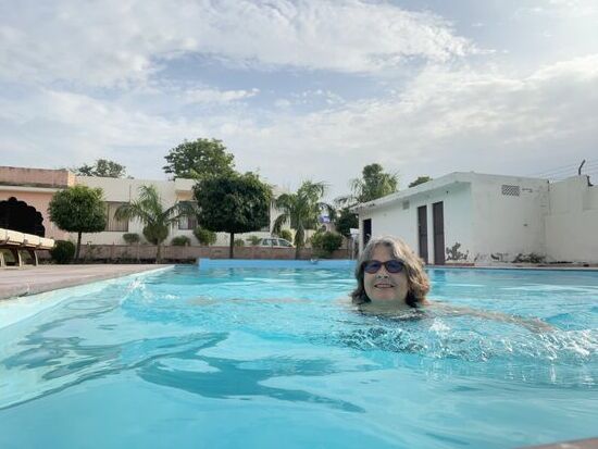In der Nacht ist noch eine junge Amerikanerin angekommen. Es scheint, sie ist ebenfalls allein auf Rajasthan-Tour, aber sie scheint noch schneller unterwegs zu sein, jedenfalls war sie gestern in Jaipur und in Pushkar. Sie ist nach Mitternacht im Hotel angekommen, nachdem sie die halbe Nacht gefahren waren. Für mich unvorstellbar.