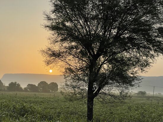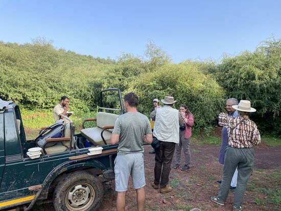 Wir schütteln weiter durch die Gegend, bleiben manchmal einen Moment stehen, um den Vögeln zuzuhören, um die Morgenstimmung aufzunehmen, die Nebeldämpfe, die aus dem feuchten Boden in die sich erwärmende Luft aufsteigen. Auf einer Anhöhe bleiben wir stehen, steigen aus, der Guia verteile Früchte, Sandwiches, Wasser.