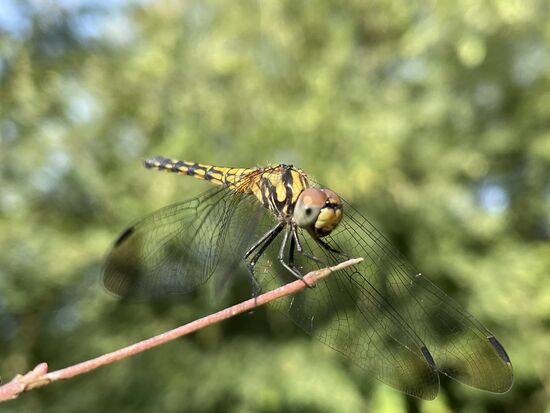 Der Guia schaut mich etwas verblüfft an. Das würde unser Business direkt vernichten, meint er dann. Nein, auf diesem kleinen Aussichtspunkt haben wir die bessere Übersicht, würden ein Tier schneller sehen. Er wird sich auskennen, ich habe inzwischen die Hoffnung auf eine Tigersichtung aufgegeben und befasse mich mit einer schillernden Libelle, die ich auf einem Zweig entdeckt habe. Wenn die grossen Tiere ausbleiben, kümmert man sich eben um die kleinen.