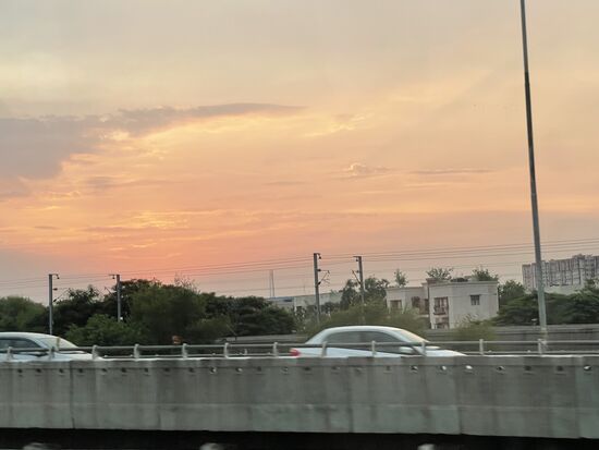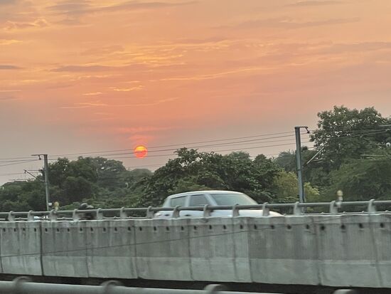 Die Sonne ist grad am Untergehen, als mich ein Taxi zum Flughafen bringt. Mir steht jetzt noch eine ziemlich lange Reise bevor.