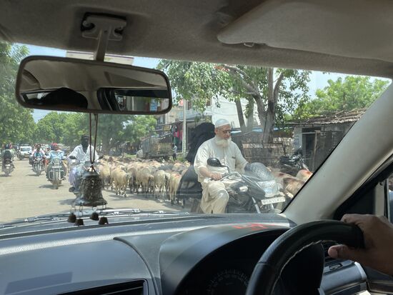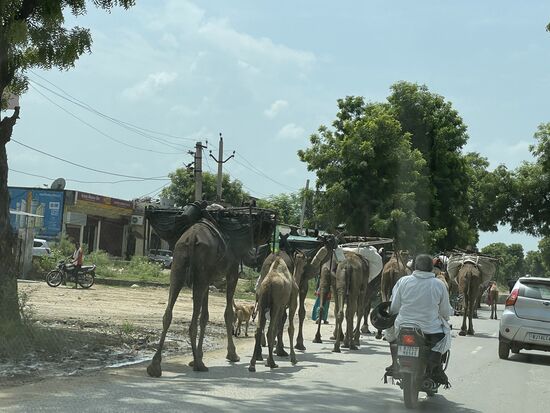 Irgendwann, nach vielen Kühen und Geissen, nach ausgeschwemmten Strassen, nach vielen schweren Lastwagen und überbevölkerten Motorrädern, die wir alle mit viel Hupen überholt haben, und mindestens einem Kamelkarren, kommen wir am frühen Nachmittag in die Nähe unseres Zieles.
