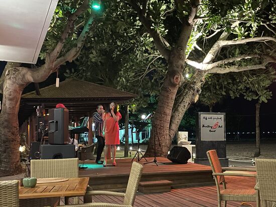 Etwas später suche ich das Restaurant, das vorne am Strand liegt. Bestelle eine Margarita und gegrillten Fisch balinesien Style und bin jetzt tatsächlich angekommen. Die Wellen rauschen, eine Band spielt live-Musik, die Ferien können anfangen, hier bringt mich so schnell nichts mehr weg.
