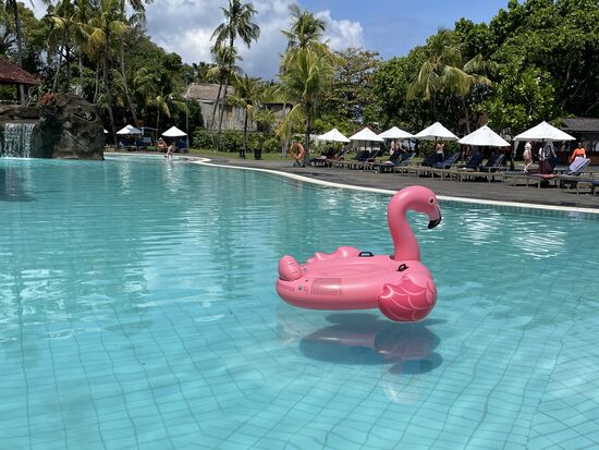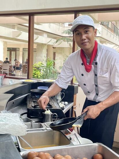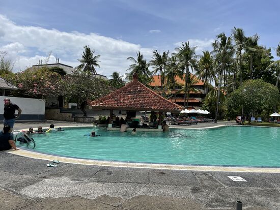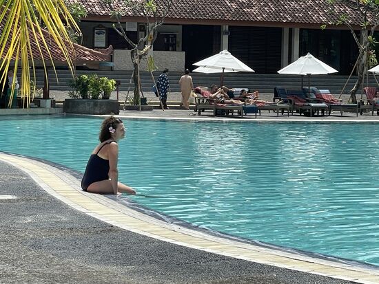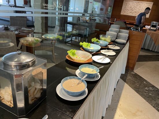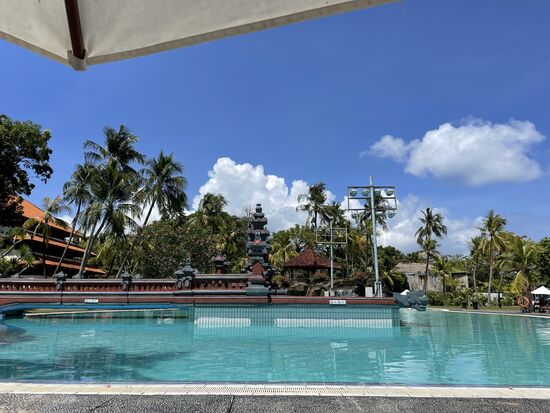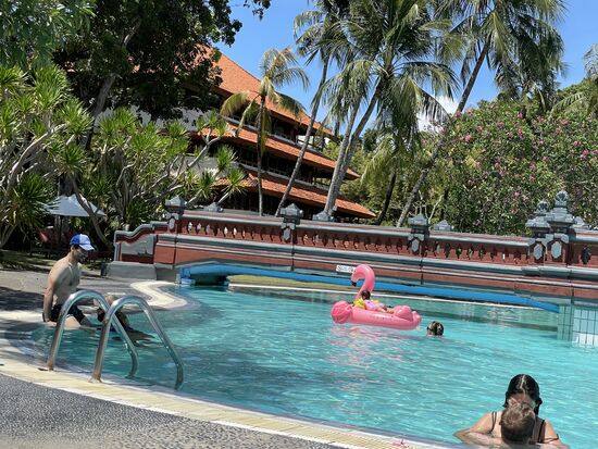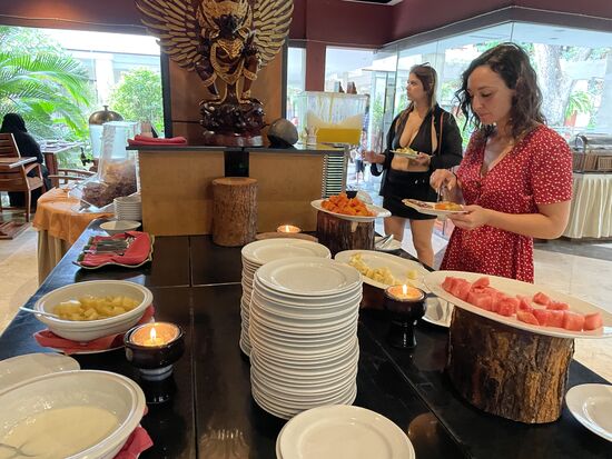 Das Frühstücksbuffet ist im übrigen fantastisch. Es gibt alles, was man sich wünschen kann, sowohl kontinental wie auch indisch/balinesisch mit Reis und warmen Gerichten. Und das Personal ist sehr freundlich.