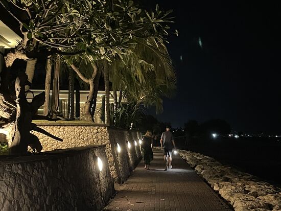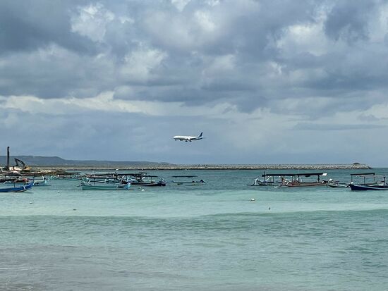 Ich bin in einem grösseren Resort untergekommen. Dieses liegt direkt am Strand und wie schon erwähnt, in der Nähe des Internationalen Flughafens von Bali. Vom Strand kann man sogar die landenden Flugzeuge erkennen. Aber man kann sie kaum hören, denn sie setzen fast direkt am Meer auf. Die ersten zwei Tage sehe ich allerdings gar nichts von meiner Umgebung. Tatsächlich habe ich mir eine regelrechte Erschöpfung zugezogen. Ich schlafe fast die ganze Zeit, raffe mich für das Frühstück am Morgen auf und tauche bald wieder ab.