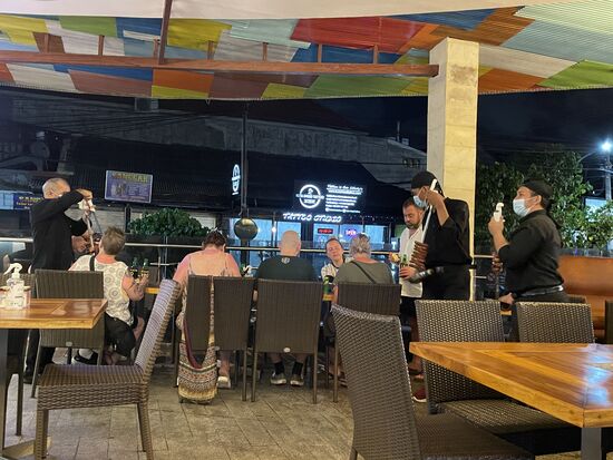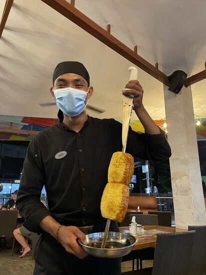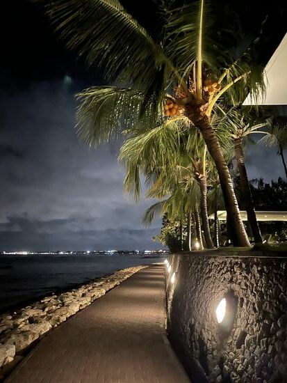 An einem anderen Abend mache ich am Strand entlang einen kleinen Spaziergang und kehre in einem der grossen Resorts ein. Hier ist die Speise-Karte grösser, es gibt sogar Aperol Spritz und ein feines Shirloin-Steak und ein Glas Rotwein. Dazu spielt auch hier eine Liveband. Mir geht es richtig gut