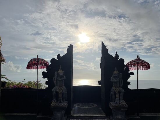 Dann fahren wir weiter Wir sind bei weitem nicht die einzigen, die den Ort im Süden der Insel beim Uluwatu-Tempel ansteuern. Jeden Abend wir der Kecak-Tanz da aufgeführt und jeden Abend seien die Strassen dahin verstopft.