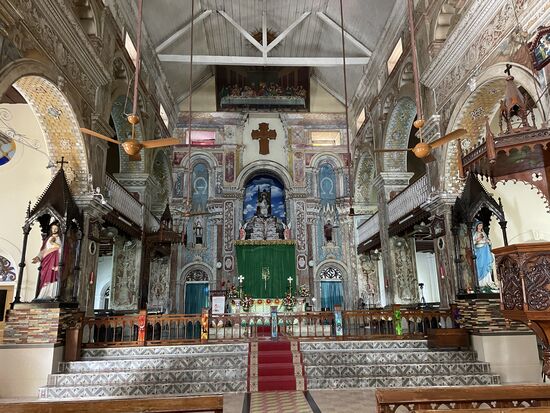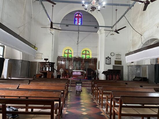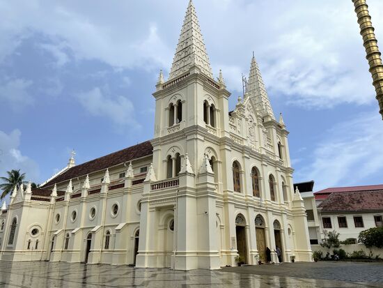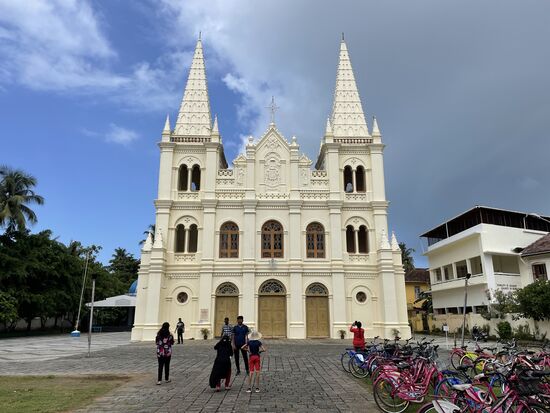 Als nächstes zeigt er mir die erste katholische Kirche der Stadt, erbaut von den Portugieren 1503. Kurz nach der Entdeckung Indiens durch die Seefahrer, die den Weg zu den Gewürzen suchten. Kerala ist daher schon immer ein Umschlagplatz für Gewürze. Ohne dass mir Faisa viel erzählt, spürt man bereits die bewegende Geschichte Indiens wenn man durch die Strassen fährt.