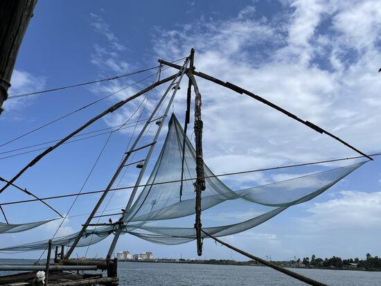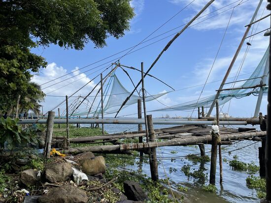Inzwischen ist es später Nachmittag geworden, wir fahren noch einmal zu den chinesischen Fischernetzen, doch diese hängen noch immer in der Luft. Faisa bringt mich zurück zur Anlegestelle und bevor wir uns verabschieden, wechseln wir WhatsApp-Nummern aus. Er möchte mich morgen zu den Backwaters bringen.