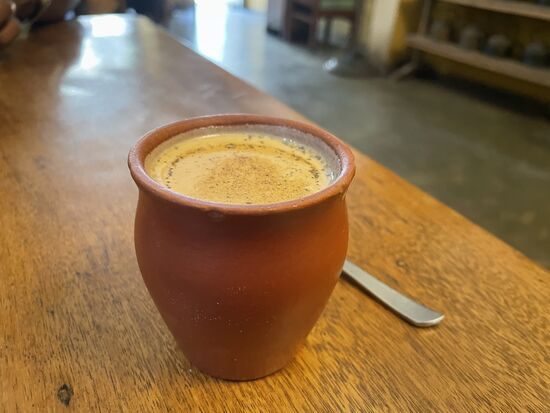 Ich möchte jetzt eine Pause und lade Faisa zu einem Kaffee oder Tee ein. Er schlägt ein kleines niedliches Lokal in einer der schmalen Strassen vor. Teapot heisst es und es sind drinnen auch ganz viele Teekrüge ausgestellt. Wir trinken einen Chai. Mit Milch und Zucker.