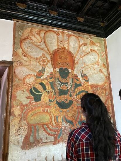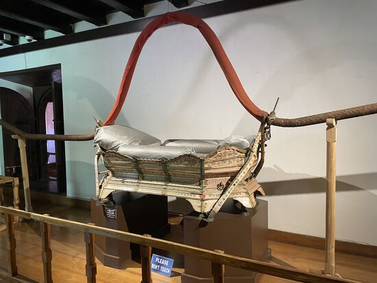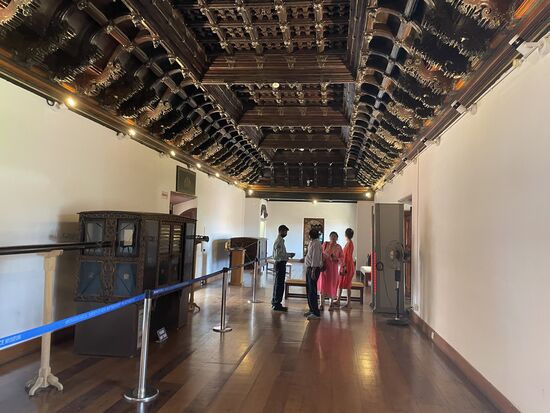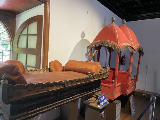 Unser nächster Besuch gilt dem Museum. Einst der Sitz der Könige. Das Haus selber ist eher einfach getaltet, drinnen aber entfaltet es seine Pracht mit geschnitzten dunklen Holzdecken und fantastischen Wandmalereien, die leider nicht fotografiert werden dürfen. Ausserdem werden Sänften aus verschiedenen Epochen gezeigt. Könige liessen sich wohl sitzend oder liegend durch die Strassen tragen.