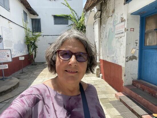 Auf dem Rückweg durch die Gasse werde ich aus allen Läden angesprochen. Ich bin auch hier die einzige Touristin. Ein älterer Mann lockt mich in seinen Laden, weil er mir unbedingt etwas zeigen will. Weiss-Stickerei. Einst kamen Europäer hierher und haben in den Missionen den einheimischen Frauen diese Kunst beigebracht. Jetzt wird es wohl nur noch an wenigen Orten in Europa gemacht, aber hier hat sich die Tradition erhalten, erzählt er stolz und zeigt mir alte Stickvorlagen.