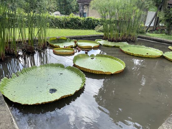 Beim Eingang gibt es einen kleinen Wasserpool, der mich mit sehr vertrauten Pflanzen erwartet. Es ist die Victoria Regia, die ich vom Amazonas kenne. Bestimmt wächst sie auch in asiatischen Ländern, aber typisch und für mich sehr anheimelnd ist sie in den Lagunen des Amazonas zu Hause. Asiatische Lotusblumen sind zwar auch Seerosen, aber sie haben nicht so grosse Blötter und vor allem nicht solche Ränder, die mich immer an grosse Kuchenbleche erinnern
