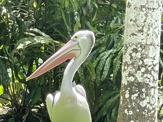 Auch die Flamingos scheinen hier nicht sehr rosa, sondern eher weiss zu sein. Die Pelikane sind riesig. Australische Pelikane steht auf der Tafel. Sie sind sehr schön gezeichnet und wenn so einer aufsteht und seine Flügel ausbreitet, kann er schon ziemlich Eindruck machen.