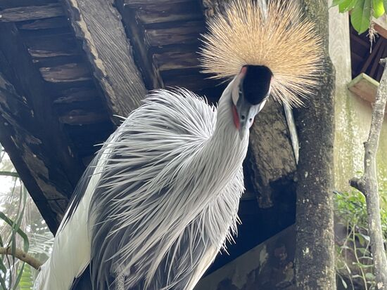 Grossen Eindruck macht auch der Kronenkranich. Ein grosser Vogel, der stolz durch das Gehege schreitet, manchmal auf einem hohen Ast stehen bleibt und sich bewundern lässt. Ich glaube, auch Tiere wissen um ihre Wirkung und entwickeln in einem Zoo die Fähigkeit, sich richtig in Position zu stellen.