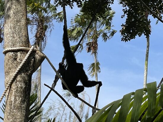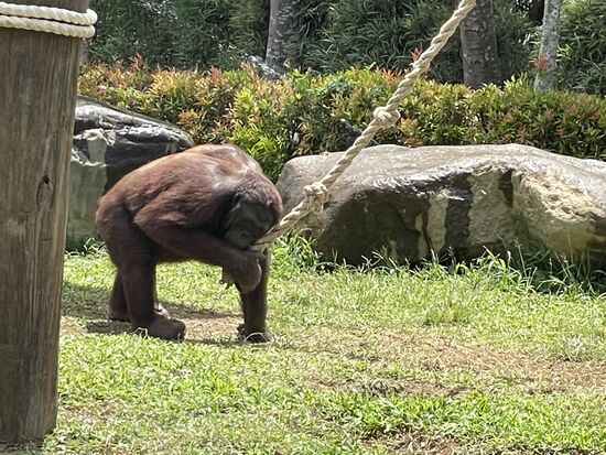 Nebenan liegen die Orang Utan im Schatten, es ist zu heiss für Spielereien. Am Morgen haben sie mit den ersten Zoobesuchern gefrühstückt. Es ist dies eine der Attraktionen die der Zoo anbietet: Frühstück mit den Orang Utangs.
