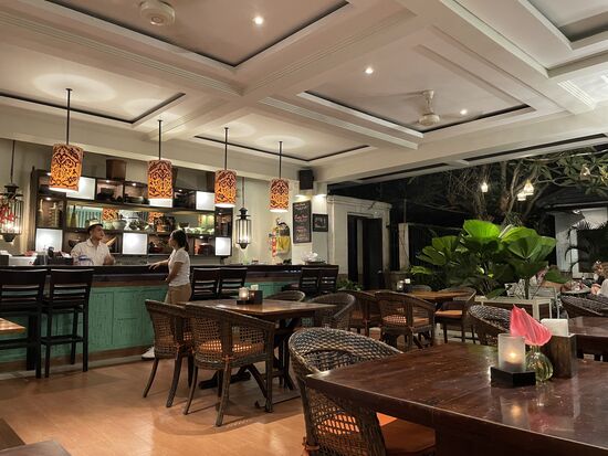 Ich ruhe mich noch etwas aus, mache einen ersten Spaziergang durch den Garten, bewundere die grossen Heliconias, die Palmfarne an den Franipangi-Bäumen und gehe später in eines der Restaurants zu einem feinen Nachtessen. Die Restaurant sind bieten internationale und balinesische fantasievolle Menus an. Und sie sind sehr gediegen und schön dekoriert. Ich freue mich auf die nächsten Tage. Im bin am richtigen Ort, um neue Energien zu tanken.
