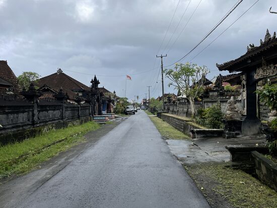 Auf vielen kurvigen Strassen verlassen wir Ubod, kommen in kleine Dörfer und fahren entlang von Reisfeldern. Strassenschilder gibt es nicht viele, eigentlich sollte man wissen, wo man durchfahren will. Die Strassen sind schmal und es gibt immer wieder Abzweigungen. Ich jedenfalls hätte mich längst heillos verfahren und habe irgendwie das Gefühlt, wir würden im Kreis fahren vor lauter linsk- und rechts-Abzweigern. Doch mein GPS zeigt mir, dass wir in nordwestlicher Richtung unterwegs sind. Tuktuks gibt es hier keine und Fahrräder ebenfalls nicht. Dafür ganz viele Motorräder und Autos. Es scheint, dass die Oekonomie in Bali recht gut ist, jedenfalls wenn man die Motorisierung ansieht.
