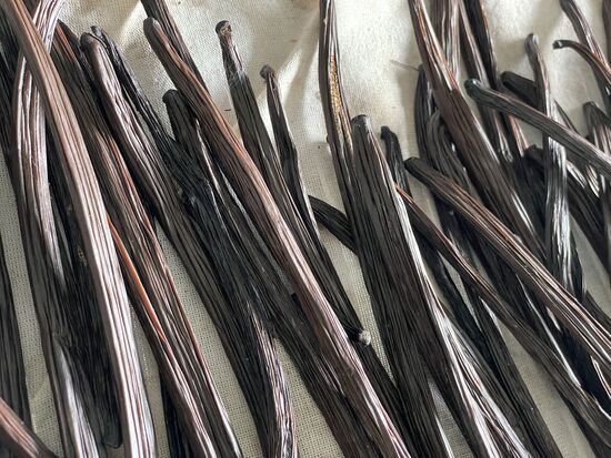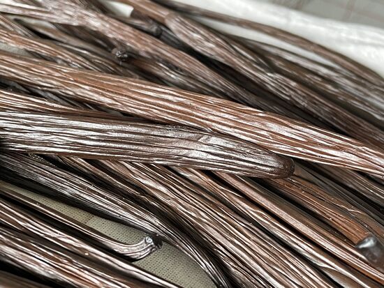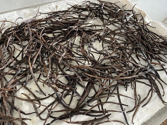 Die Schoten sind bereits aussortiert. Die grossen dicken, die wunderbar riechen, werden als ganze Schoten weiter bearbeitet, respektive verkauft. Die etwas kleineren, die sich etwas winden, werden nach dem Trockungsprozess gemahlen und als Vanillepulver verkauft. Die grossen nennt Adi Gourmet-Vanille.