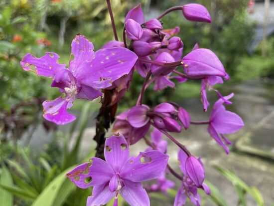 Während sich Adi mit den Besitzern des Gartens unterhält, sehe ich mich noch ein wenig um, staune über die vielen verschiedenen Pflanzen, fotografiere ein paar Orchideen und komme auf eine weitere interessante Pflanze, die ich noch nie gesehen habe.