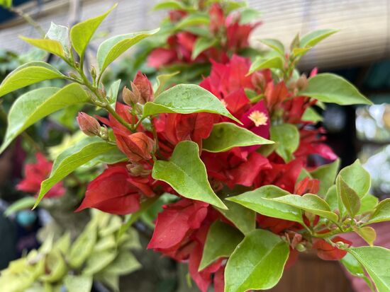 Wir fahren weiter, denn Adi will noch Komposterde für den Hotelgarten besorgen. Auch dieser Halt ergibt wieder ein paar neue Blumenbilder. Diese intensive rote Farbe der Bougainvillea jedenfalls habe ich noch kaum so gesehen. Ausserdem scheint es eine spezielle Sorte zu sein mit ihrem dichten grünen Blattwerk.