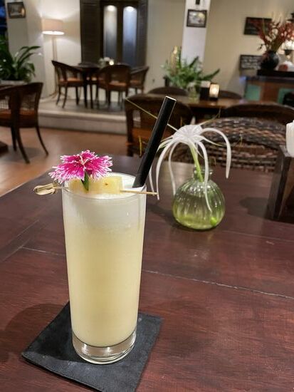 Später gehe ich in eines der Restaurant in der Nähe zum Nachtessen. Tatsächlich ist hier jedes Restaurant gepflegt. Das Essen ist fantasievoll, und appetitlich angerichtet. Heute gibt es eine Pinacolada und ein Nasi Goreng.