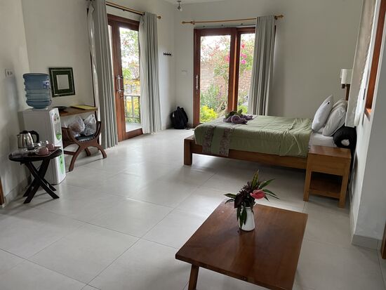 Ich will also noch ein wenig in den Norden von Bali reisen und muss mich zwischen den verschiedenen Seen im Norden entscheiden West oder Ost? im Osten ist der Vulkan, im Westen gibt es einen botanischen Garten und ausserdem mehrere Seen. Den Vulkan könnte man zum Sonnenaufgang besteigen. Da ich aber eh mehr an Pflanzen als an Trekking interessiert bin, entscheide ich mich für den Westen und buche in Hotel am Tamlingan-See und frage Wayan, was der Transfer kosten würde.