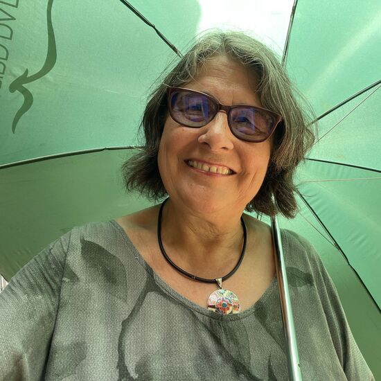 Es ist Zeit für einen Standortwechsel. Den Schirm habe ich bereits vor ein paar Tagen gefunden. Im Vogelpark entdeckte ich in einem grossen Kübel ein paar Schirme für die Besucher, falls es unvrhofft regnen würde. Da ich grad eine grüne Bluse trug, musste ich die Gelegenheit natürlich für ein Selfie benutzen.