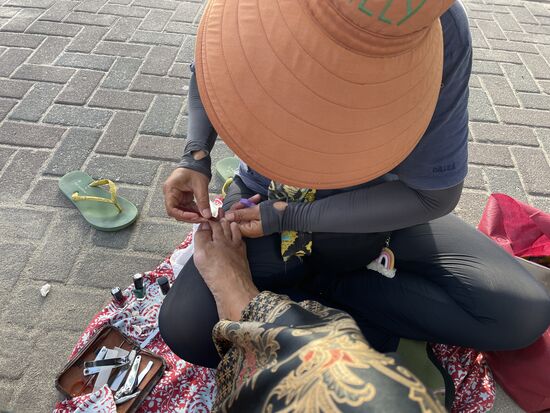 Ich war an diesem Abend die zweite Kundin des Tages, der sie die Nägel machen durfte, nachdem sie den ganzen Tag Leute angesprochen und über Preise verhandelt hatte. Meine neuen Nägel kosteten 100'000 Rupiah. (ca. Fr. 6.50)