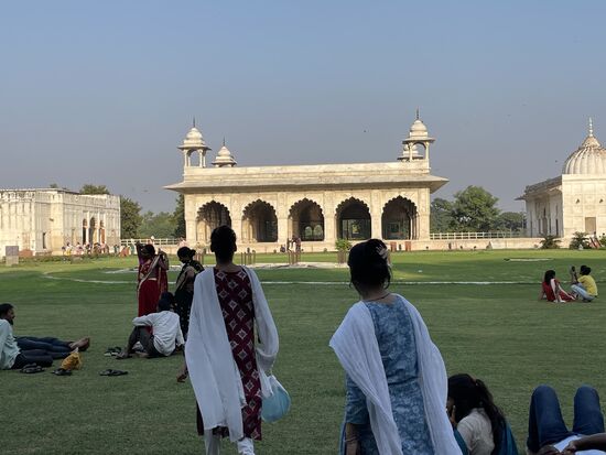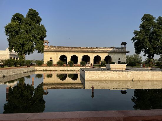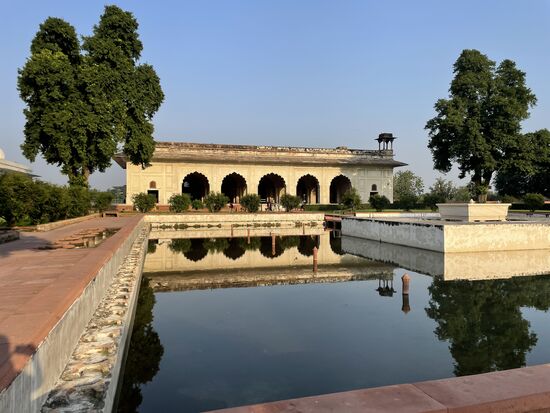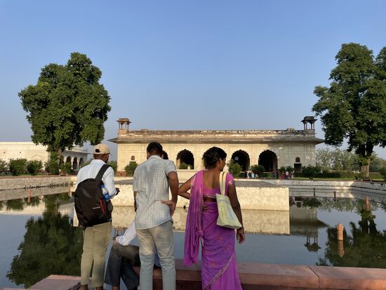 Ich lasse mir Zeit, bummle durch die Anlage, bewundere die wunderschönen Saris und wie selbstverständlich die Frauen mit ihren langen Räcken durch die Anlage spazieren. Auch sehr viele junge Mädchen, die mit ihren Freunden unterwegs sind, tragn dieses traditionelle Kleid. Dabei entdecke ich immer wieder neue Hallen, neue Gebäude, Wasserbecken ohne und mit Wasser, in denen sich die eleganten Hallen spiegeln und mache meinerseits das eine oder andere Selfie, bis mich der Rundgang wieder zurück zum Eingangstor bringt.