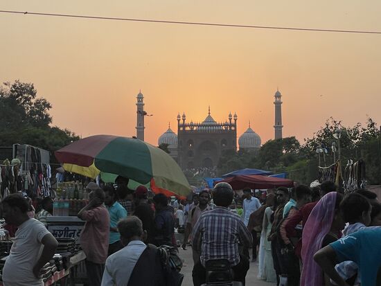 Erst als ich wieder im Tuctuc sitze, realisiere ich, dass die Sonne eben grad am Untergehen ist. Rasch lasse ich Ashish noch einmal anhalten und bekomme grad noch die letzten Strahlen der Sonne, die hinter der grossen Moschee untergeht.