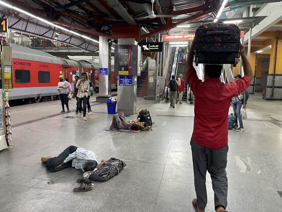 Es ist noch dunkel, als mich das Taxi um halb sechs abholt. Das Taxi fährt mich zum Hauptbahnhof von Delhi, an dem schon einiges los ist.