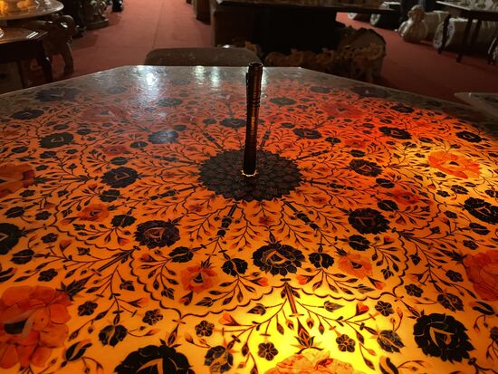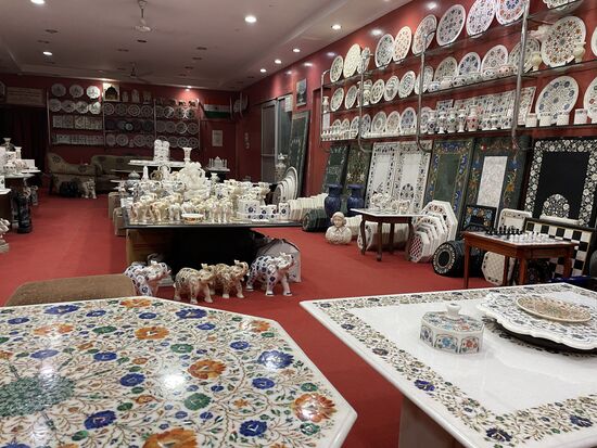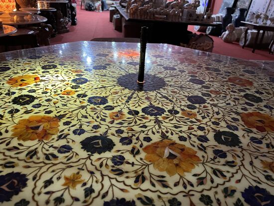 Im Laden dann führt er mir anhand eines wunderschönen Tisches vor, wie durchscheinend Marmor ist und wie unterschiedlich sich die verschiedenen Farben präsentieren. Es ist sehr eindrücklich und ich bin froh, dass ich diese Arbeit kennen lernen durfte. Doch beim Kaufen muss ich passen. Die Sachen sind extrem teuer, das ist zwar aufgrund der riesigen Arbeit völlig in Ordnung. Trotzdem muss ich mich wieder einmal erklären und mir ist bald klar, dass sich der ganze Besuch um den Verkauf handelte. Ali hätte sich wahrscheinlich eine kleine Provision verdient, hätte ich irgendwo eingeschlagen. Ein voller Koffer ist selbstverständlich kein Hinderungsgrund. Der Versand wäre gratis, versichert mir Mr. Kahn, der Verkäufer. Das Goberment käme den Handarbeitsbetrieben in dieser Beziehung entgegen, so dass sie Gratisversand anbieten könnten.