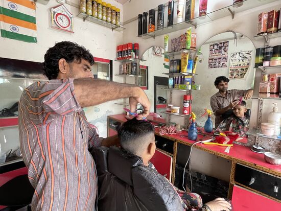 Nach dem Frühstück mache ich eine Runde durchs Quartier. Schaue in viele kleinen Läden, wo ich von einigen Ladenbesitzern bereits gegrüsst werde, weil ich wohl schon zum dritten Mal vorbei laufe. Andere rufen Pani? Wasser? denn sie möchten mir eine Flasche Wasser verkaufen. Kleine Geschäfte, die auf die kleinsten Einkünfte angewiesen sind. Bei Coiffeuren schaue ich hinein und werde mit einem Winken gegrüsst. Komm herein, meint der Coiffeur, der grad einem kleinen Jungen eine modernen Kurzhaarschnitt verpasst.
