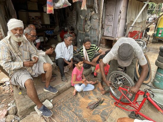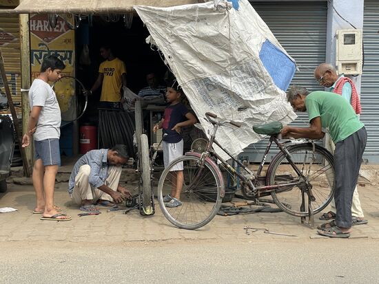 Beim Fahrradhändler muss ich selber lachen. Ein kleiner Junge schaut zu, wie sein rotes Fahrrad repariert wird. Doch er ist nicht der einzige Zuschauer. Fünf Männer sitzen ebenfalls da, plaudern, gucken in ihre Handys. Vielleicht warten sie auf Arbeit, vielleicht gehören sie einfach zu zum Inventar des Händlers und machen kleine Besorgungen, wenn es sie braucht.