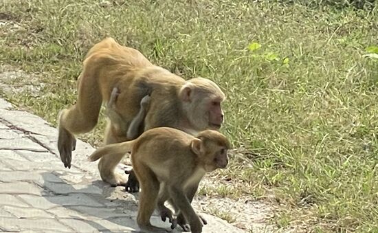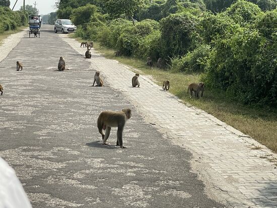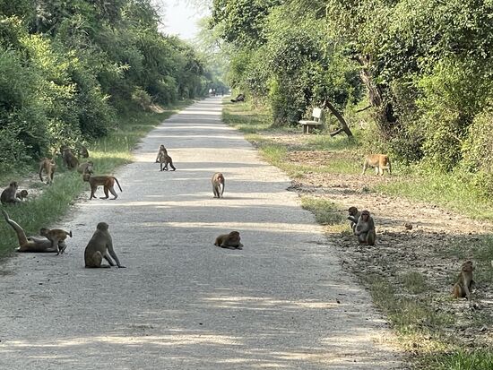 Wir begegnen einer Affenbande. Noch immer habe ich ziemlichen Respekt vor den Tieren, auch wenn sie uns diesmal kaum beachten, knapp zu Seite gehen, wenn sich ein Fahrzeug nähert und danach die Strasse wieder in Anspruch nehmen.