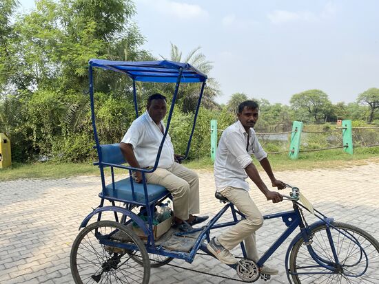 In den Park kommt man mit Rikschafahrern und wahrscheinlich könnte man sich auch Fahrräder ausleihen. Ali kommt zu meiner Überraschung mit auf die Fahrt und bleibt diesmal nicht mit dem Taxifahrer draussen. Das erschwert es für unseren Fahrer doch beträchtlich, denn wir sind beide keine leichte Fracht. Das merkt man vor allem am Anfang unserer Fahrt, da das Gelände ganz leicht ansteigt. Da muss sich Rakesh ziemlich anstrengen, er tut mr leid.