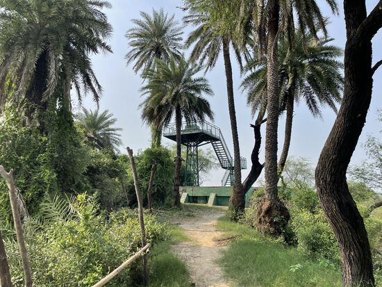 Ich geniesse die Ruhe da oben, sehe über das Wasser zu den Nestern der Buntstörche und in den Palmenhain.