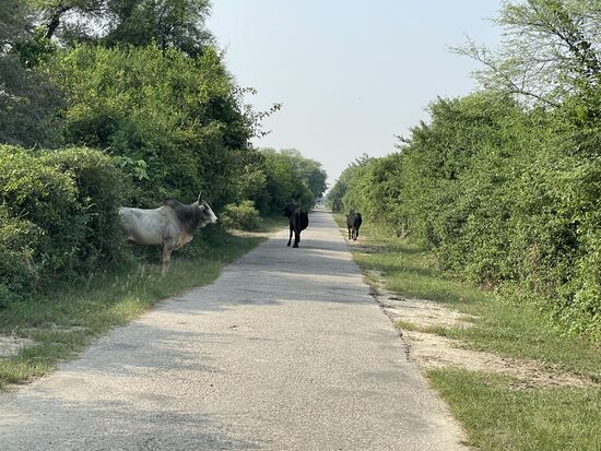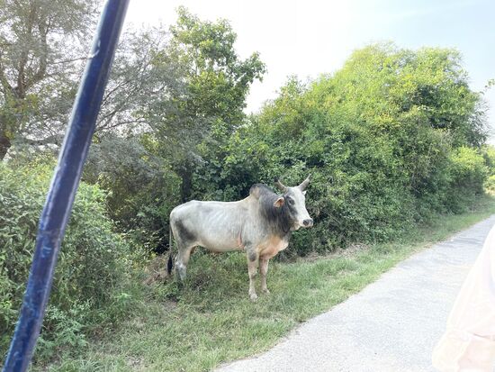 Ich mache dann tatsächlich die letzten paar Meter zu Fuss. Schmetterlingen begegne ich leider keinen mehr, aber ein paar Kühe kreuzen den Weg. Und mein Abstecher ermöglicht es mir, unserem Fahrer heimlich ein Trinkgeld zuzustecken. Für die Aufnahmen, die er für mich gemacht hat. Ich hatte gestern schon gemerkt, dass Ali das nicht schätzte, als ich meinen Guide etwas bezahlte. Das sei alles in meinem Preis inbegriffen, meinte er. Vielleicht denkt er, dass ich meine Trinkgelder bei ihm lassen soll. Was zwar in seinem Falle verständlich ist, aber ich muss mich ja nicht immer an Vorgaben halten. Jedenfalls strahlt Rakesh über das ganze Gesicht und versichert mir, dass er jetzt sehr happy sei.