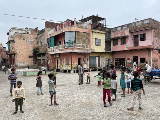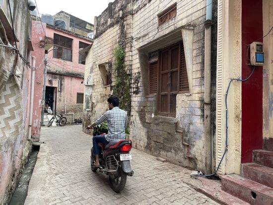 Diese Häuser sind mehr als 400 Jahre alt, erzählt er. Zuerst war der Ort ein Dorf, ein Dorf, das sich um das Taj Mahal scharte. Viele der Häuser haben noch immer Spuren aus dieser Zeit.