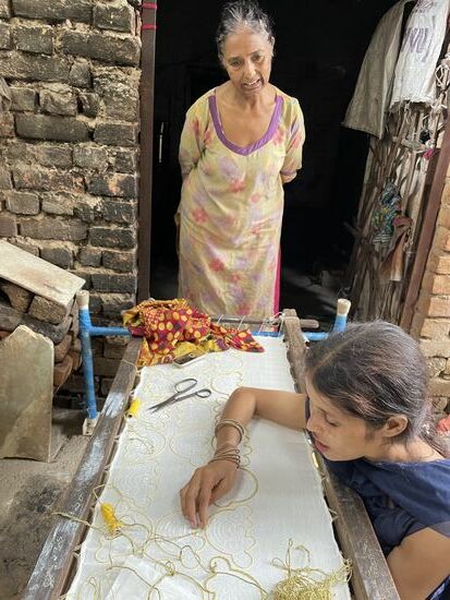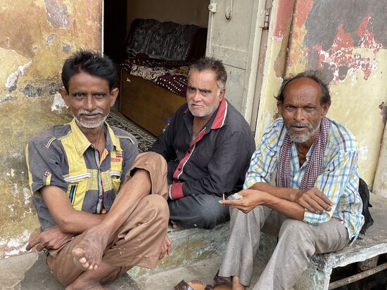Seine Frau sei oben am Teppichknüpfen, erklärt mir Chand, der mich hergebracht hat, Inzwischen ist auch sein Bruder hier. Leider sprechen beide nur ein schlechtes Englisch, aber ihre Freude ist gross, eine Fremde in ihrem Haus zu Gast zu haben. Sie lassen Chai holen, wobei ich nicht sicher bin, ob sie es auf der Strasse organisiert oder ob er von einer der Frauen gekocht wurde.