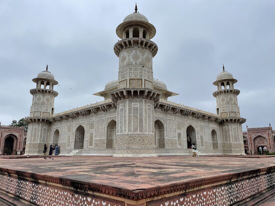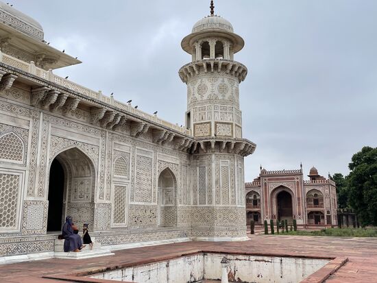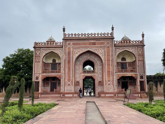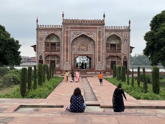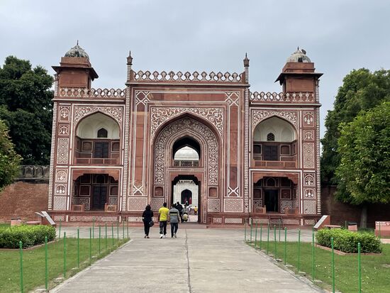 Vor dem Hostel warten die Tuctuc-Fahrer, die mich unbedingt irgendwohin bringen wollen. Es scheint mir an der Zeit, mir noch das Baby Taj Mahal anzusehen. Es handelt sich dabei um ein früheres Grabmal. Sein offizieller Name lautet Itmad-ud-Daula und es wurde von der Frau eines Mogulenherrschers in Auftrag gegeben für ihren Vater,