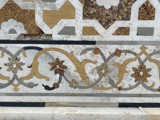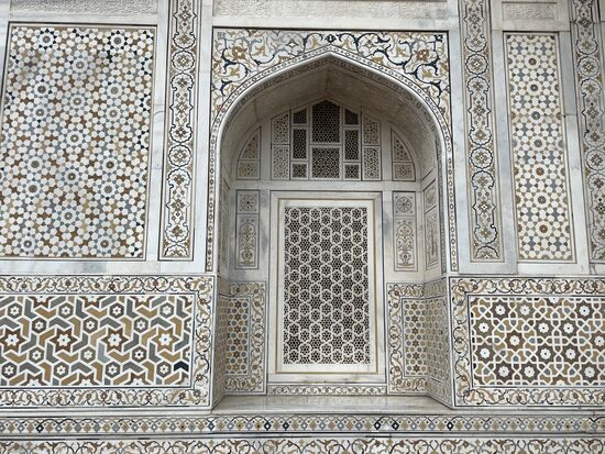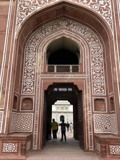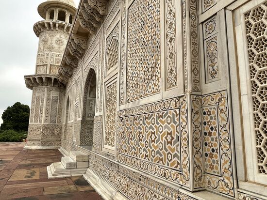 Ich bin inzwischen diese fantastischen Bauten gewohnt, glaube, dass mich in dieser Beziehung nichts mehr überraschen kann, aber auch dieses Grabmal ist wiederum einmalig in seiner Komplexität. Schon die Tore sind unglaublich reich mit Marmorintarsien bestückt. Diese filigranen Arbeiten sind einfach fantastisch