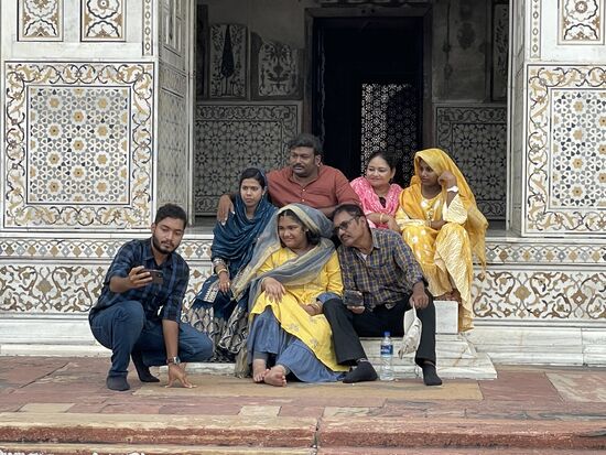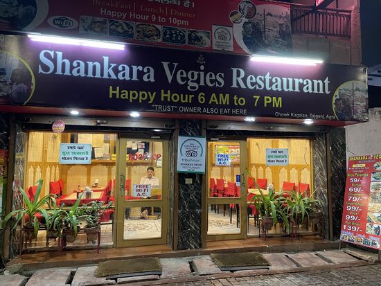 Es sind nicht viele Leute im Lokal und so komme ich bald mit den beiden Brüdern ins Gespräch, die das Restaurant führen. Ihr Betrieb scheint sehr gut gearbeitet zu haben. Alles war gut, meint einer von ihnen. Dann kam Covid und wir mussten schliessen und jetzt fängt es ganz langsam wieder an. Es kommen viele Gäste mehrmals. Sie trinken hier einen Kaffee bevor sie zum Taj Mahal gehen und kommen zum Mittagessen wieder vorbei. Und wenn sie in der Nähe übernachten, kommen sie sogar mehrmals zum Nachtessen.