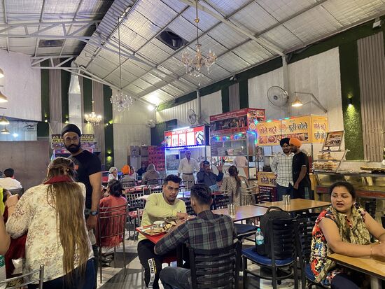 Zum Essen gehe ich in eines der grossen offenen Restaurants, wo die Bilder an den Wänden und auf der Speisekarte zeigen, was es gibt. Ich bestelle ein Paneer-Curry mit etwas Reis. Das ist ein Frischkäse, scharf gewürzt. Schmeckt sehr fein und ich bin inzwischen schon ziemlich an die scharfen Speisen gewöhnt.