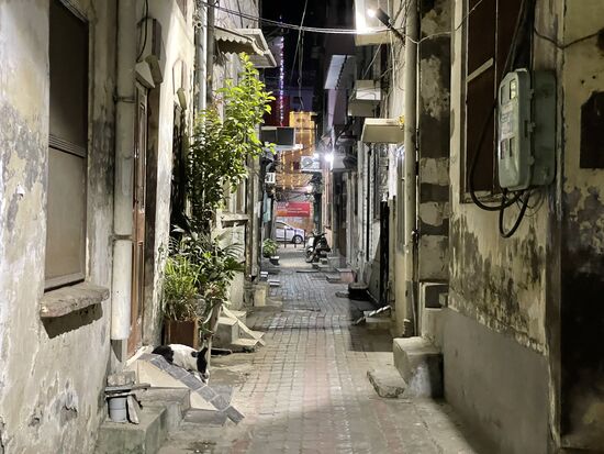 Jetzt kommt der spannendere Teil. Die Fahrt durch die Altstadt mit dem Tuctuc. Es geht durch schmale Gassen, die voller Menschen sind, Voller Menschen und voller Tuctucs. Fahrräder, Rikschafahrer, Handwagen und ganz viele Menschen zwängen sich durch die Gassen. Diese bestehen fast nur aus Schlaglöchern, was die Fahrt noch zusätzlich spannend macht, denn jeder versucht, diesen so gut als möglich auszuweichen, was uns immer wieder auf die Gegenfahrbahn bringt. Sofern es sowas in diesen schmalen Gassen überhaupt gibt. Man drängt um die Ecke, zwängt sich an Menschen vorbei, kämpft wieder einmal um jeden Zentimeter. Ich versuche ein schüttelndes Video zu machen, das zwar extrem lang geraten ist und das Feeling trotzdem nicht ganz wiedergeben kann, aber es zeigt mindestens, wie die Gassen aussehen. Mit ihren Verkaufsläden auf beiden Seiten. mit all dem Lärm, dem Gedränge und nätülich mit dem ganzen Gehupe.